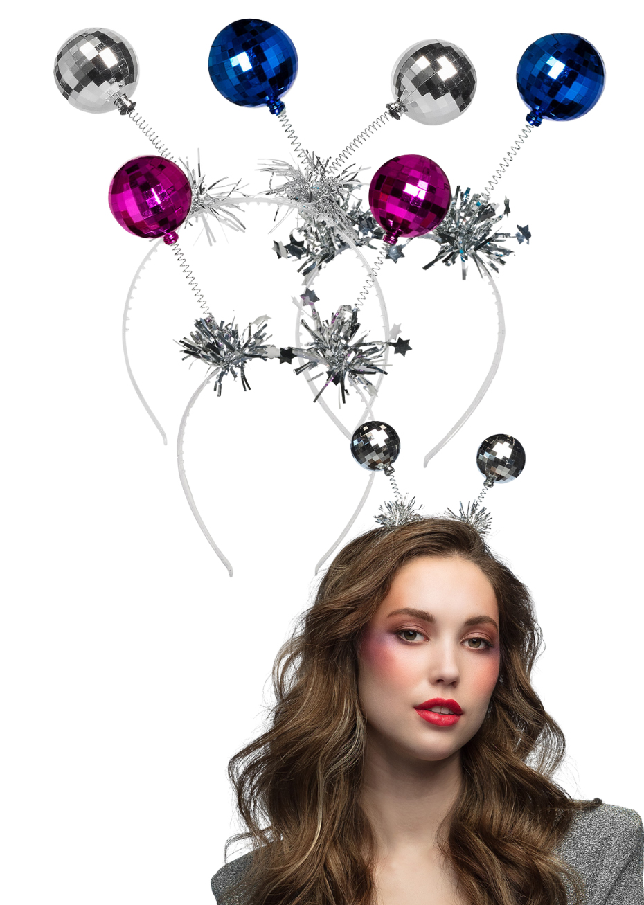 Le serre-tête antennes boules disco est un accessoire amusant pour compléter un déguisement original ou décalé. Les boules à facettes sont montées sur ressorts pour ajouter un effet vibrant et festif. Léger et confortable, il convient aux enfants comme aux adultes. Idéal pour évènements à thème, carnaval et soirées déguisées.