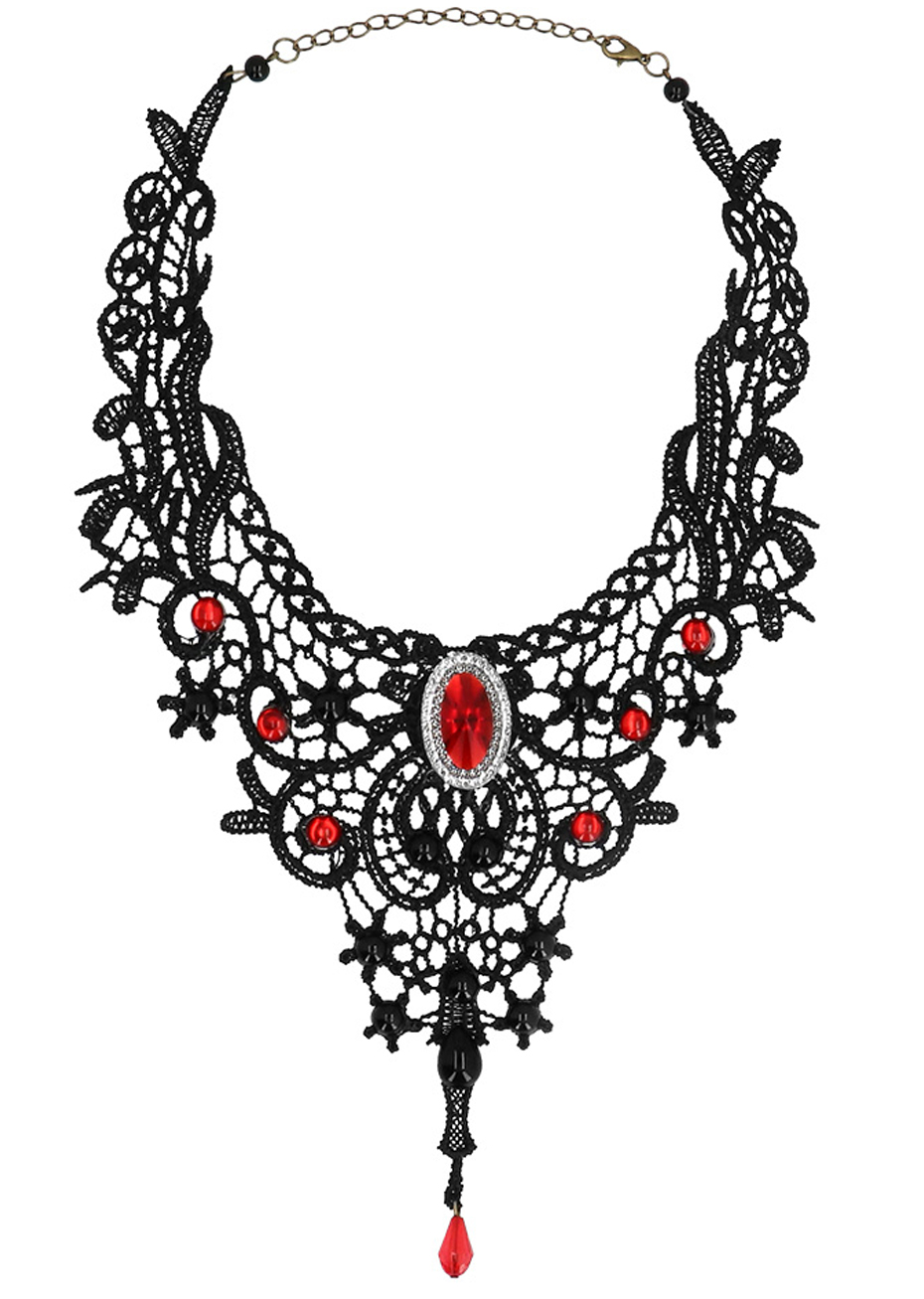Collier Choker Lady Vampire, Ras de Cou Dentelle et Pierres