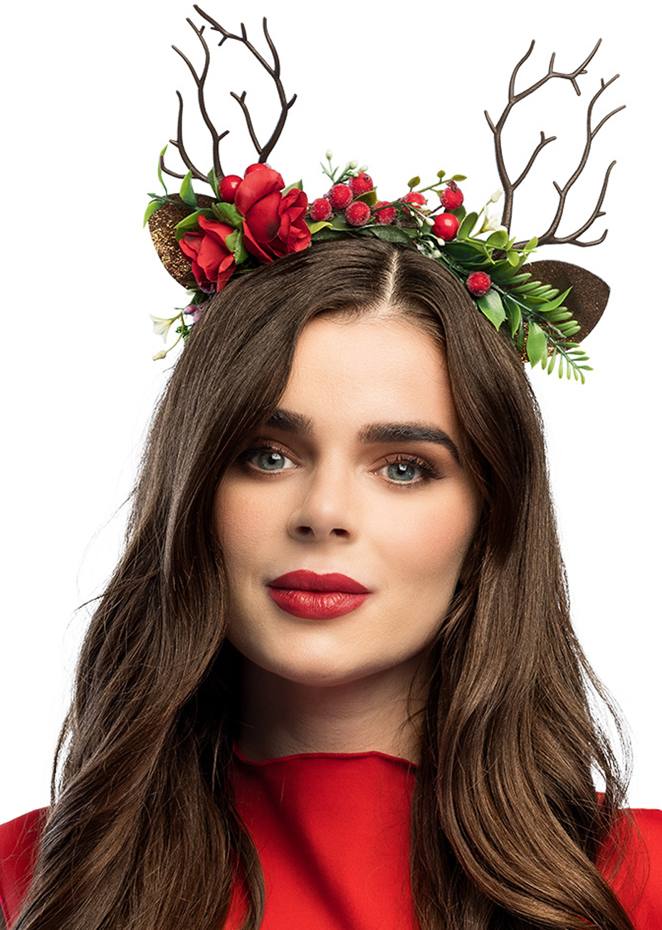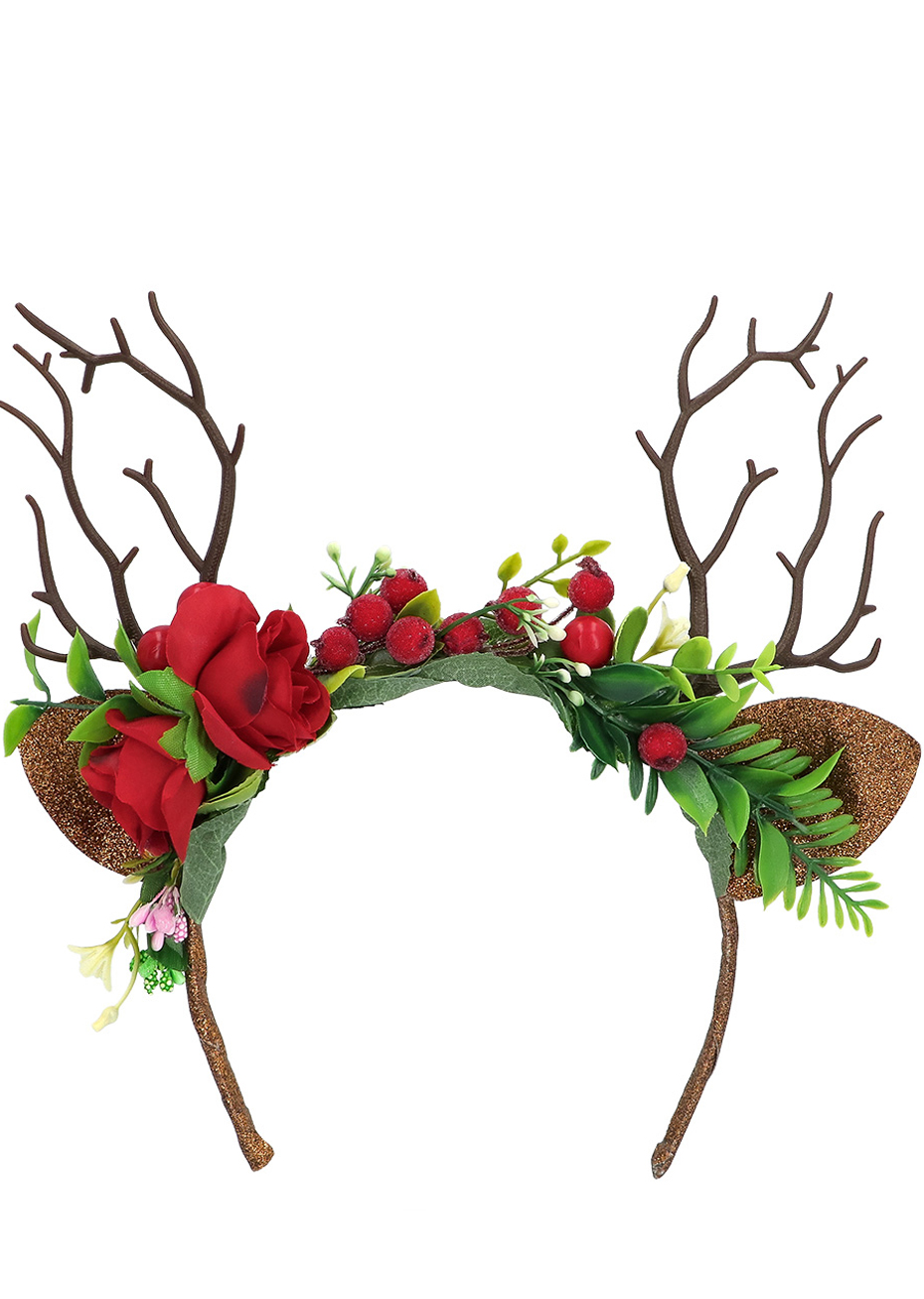 Ce serre-tête cornes de renne est orné de fines branches brunes, de roses rouges, de baies et de feuillages. Il apporte une touche nature et festive à une tenue hivernale ou féerique. Léger et confortable, il est parfait pour compléter une tenue au style forestier élégant et coloré, pour une soirée à thème, un réveillon ou une soirée déguisée.