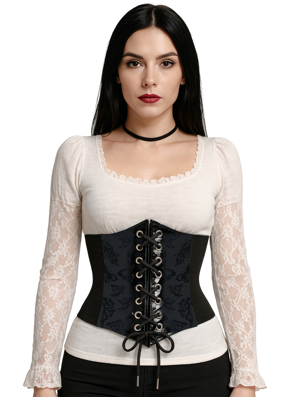 Corset Noir Papillons et Rubans – Réglable 🖤🦋