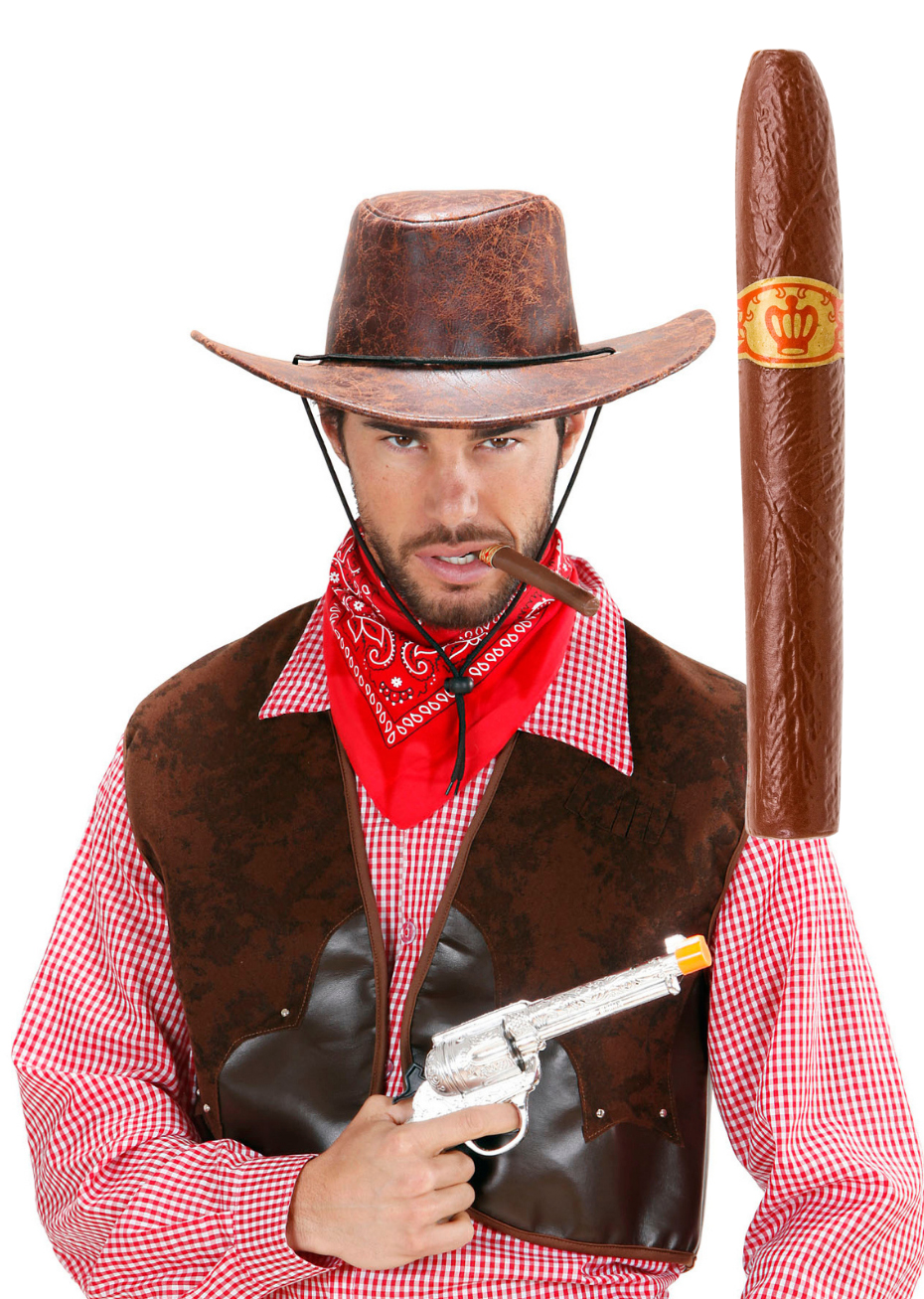 Ce cigare factice est conçu comme un accessoire de déguisement, sans tabac ni fumée. Sa forme allongée et son aspect réaliste permettent de l’utiliser facilement en complément de nombreux styles. Léger et simple à manipuler, il se tient à la main ou à la bouche pour compléter une tenue sans contrainte. Parfait pour des thèmes variés : western, années 30, gangster, cubain ou ambiances rétro.