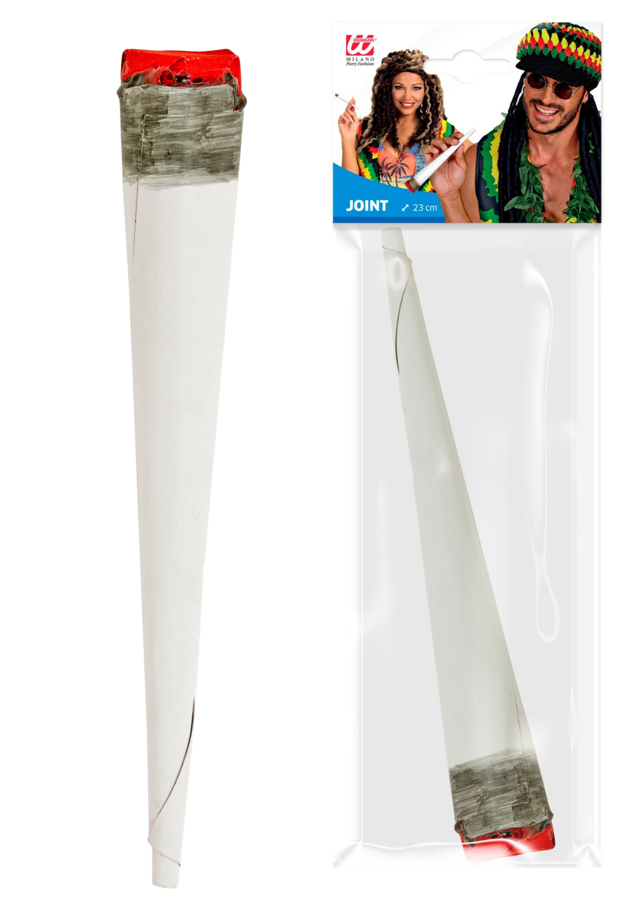 Ce faux joint rasta de 23 cm est un accessoire de déguisement sans tabac ni substance, conçu uniquement pour la mise en scène. Sa forme allongée et son aspect réaliste permettent de l’utiliser facilement à la main ou à la bouche. Il complète facilement une tenue à thème et est idéal pour des ambiances rasta, hippie ou festives lors d’une soirée déguisée.