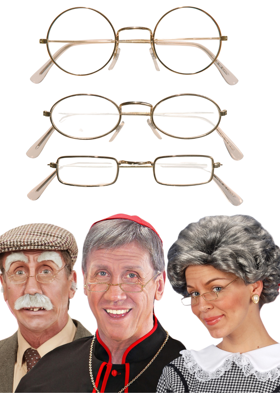 Ces lunettes fines dorées se déclinent en trois modèles : rondes, rectangulaires et ovales. Leur monture cerclée dorée apporte une touche classique et polyvalente, idéale pour incarner différents personnages : Père Noël, lutin, vieil homme, vieille femme, cardinal, et bien d’autres encore. Cet accessoire mixte s’adapte à de nombreux déguisements et soirées à thème.