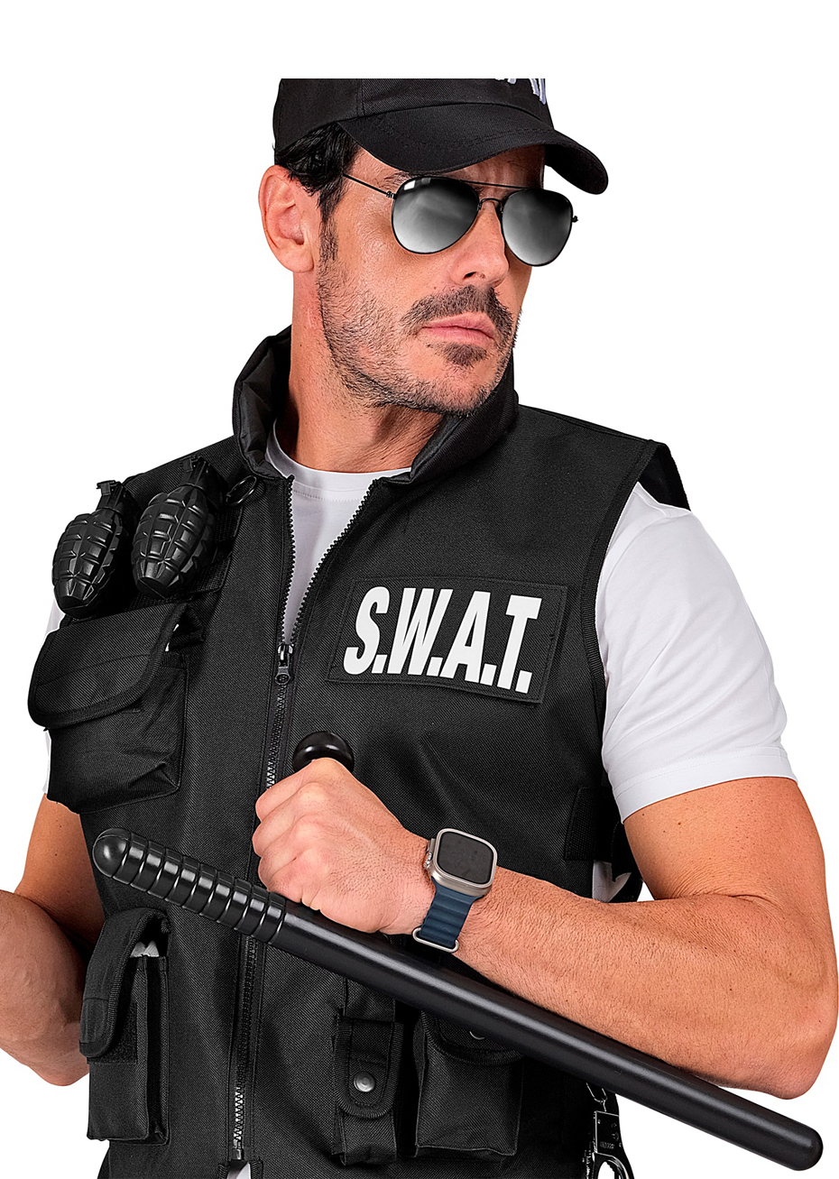 La matraque tonfa de policier est un accessoire léger et facile à manier, conçu pour compléter un déguisement de policier ou d’agent de sécurité. Elle dispose d’une poignée perpendiculaire qui assure une prise en main optimale. Idéal pour carnaval, soirée déguisée, fête à thème ou Halloween.
