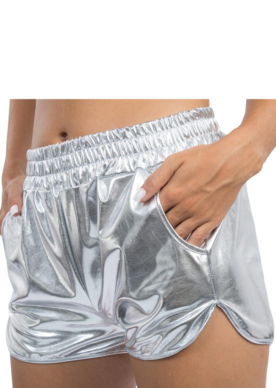 Ce Short argent métal a une finition super brillante, une coupe courte et une ceinture élastique. Idéal pour une tenue futuriste, disco ou inspirée des années 80 et 90, il convient aussi bien pour une soirée à thème que pour un festival ou une ambiance électro.