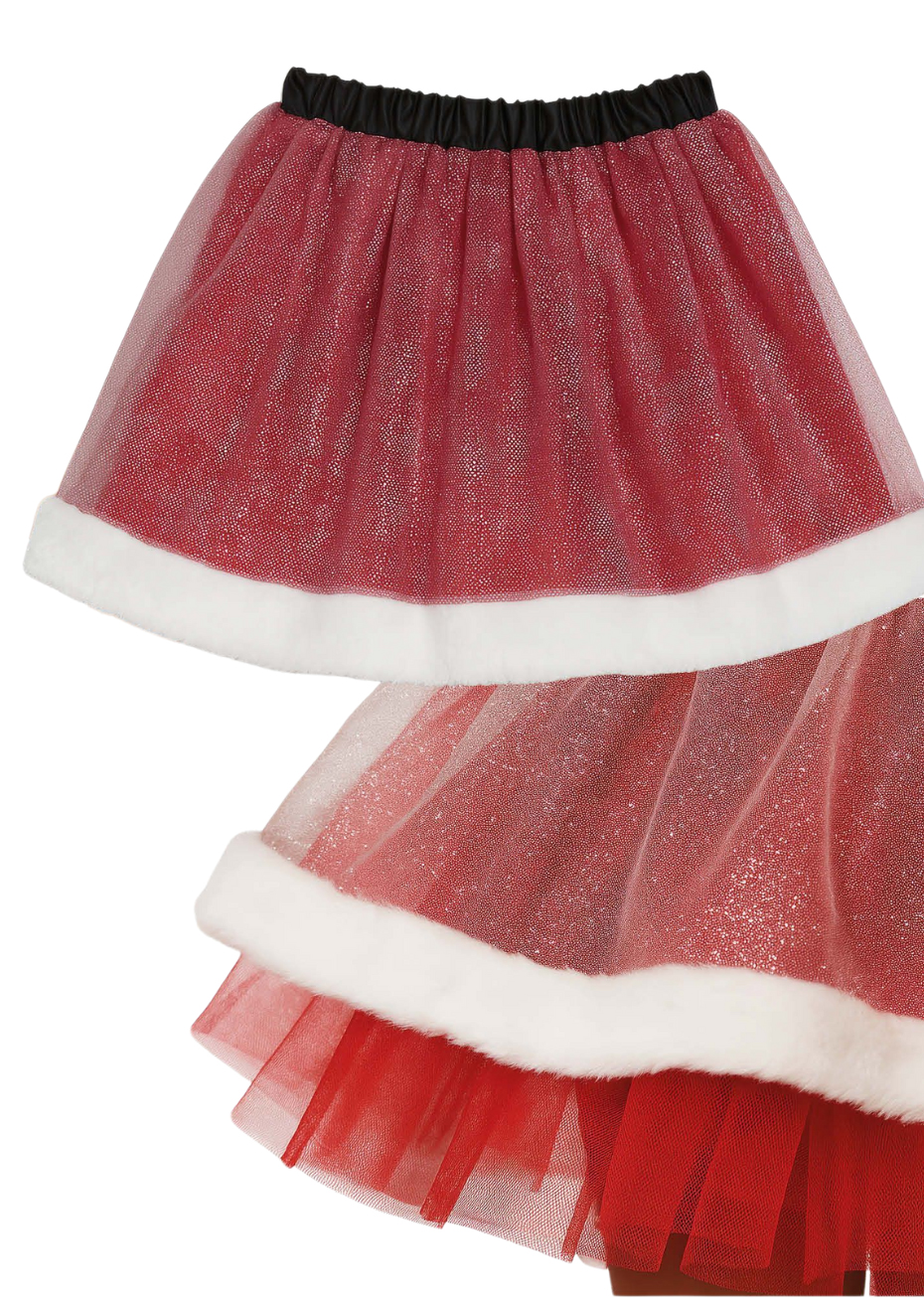 Tutu de Mère Noël – Tulle Rouge, Paillettes et Bordure Fourrure 🎅✨