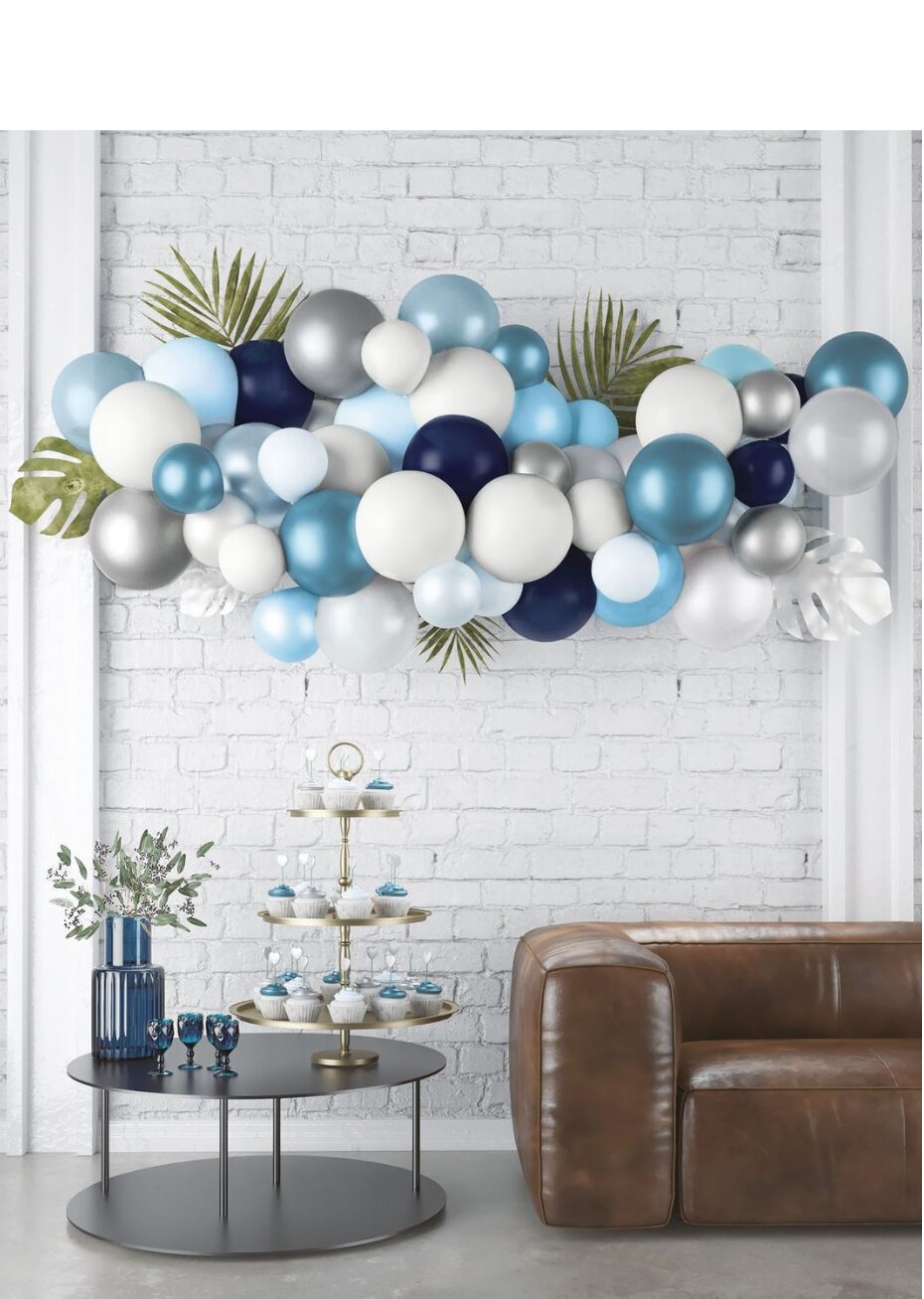 Cette guirlande de ballons bleu et argent permet de créer une décoration élégante et moderne pour une fête. Le kit permet de réaliser facilement une guirlande ou une arche souple pour décorer un mur, une salle ou un espace photo. L’association du bleu, du blanc et de l’argent est idéale pour un anniversaire, un baptême, une baby shower ou une fête à thème. Les ballons peuvent être installés sur la guirlande ou utilisés séparément, dispersés ou en bouquets.