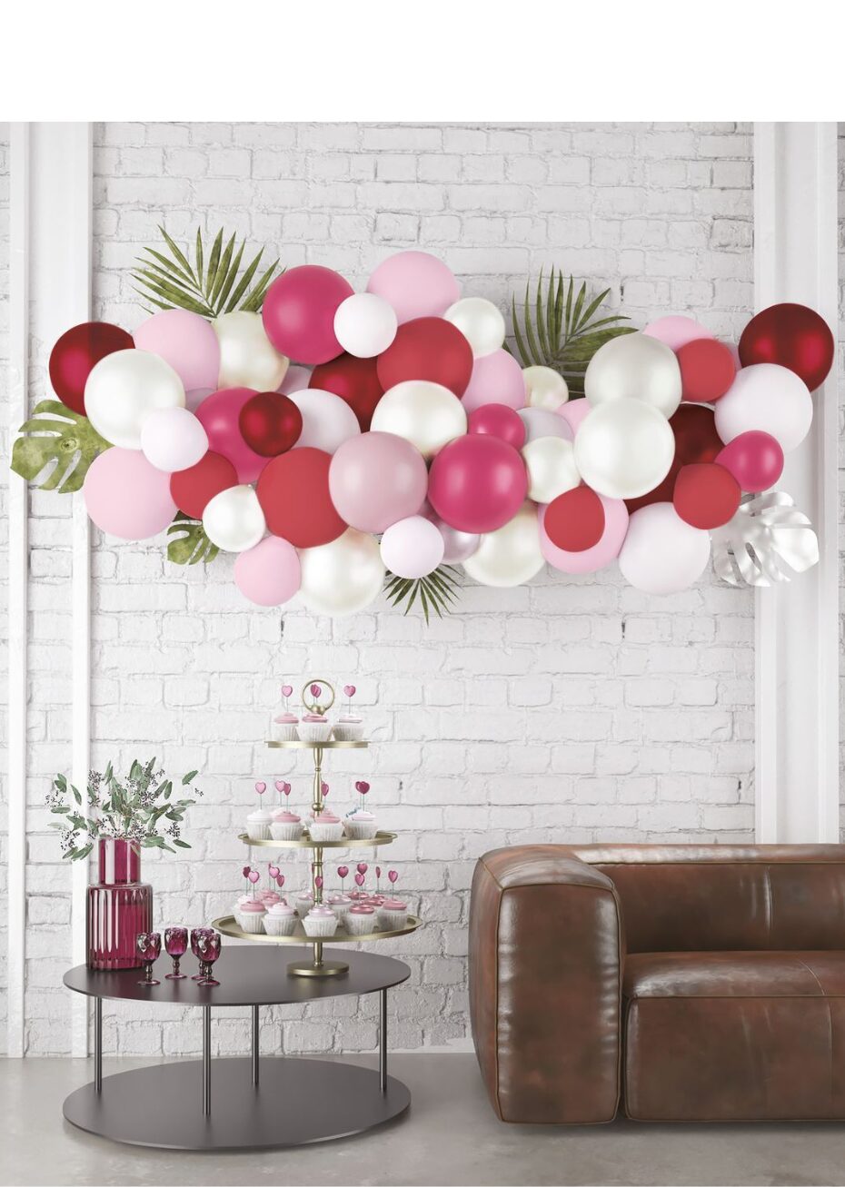 Créez facilement une décoration festive avec cette guirlande de ballons roses et blancs. Ce kit permet de réaliser une décoration murale volumineuse pour mettre en valeur une table, un candy bar ou un espace photo. Les différentes tailles de ballons permettent d’obtenir un effet décoratif harmonieux et tendance. Vous pouvez assembler les ballons sur la guirlande ou les utiliser séparément pour réaliser des bouquets à disperser. L’association du rose, du blanc et de tons plus soutenus est parfaite pour un anniversaire, une baby shower, ou une fête.