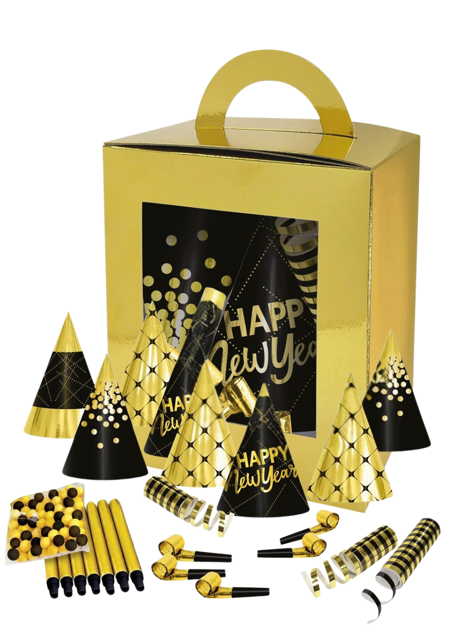 Boite de cotillons de Nouvel An – Dorés et Noirs 🥳