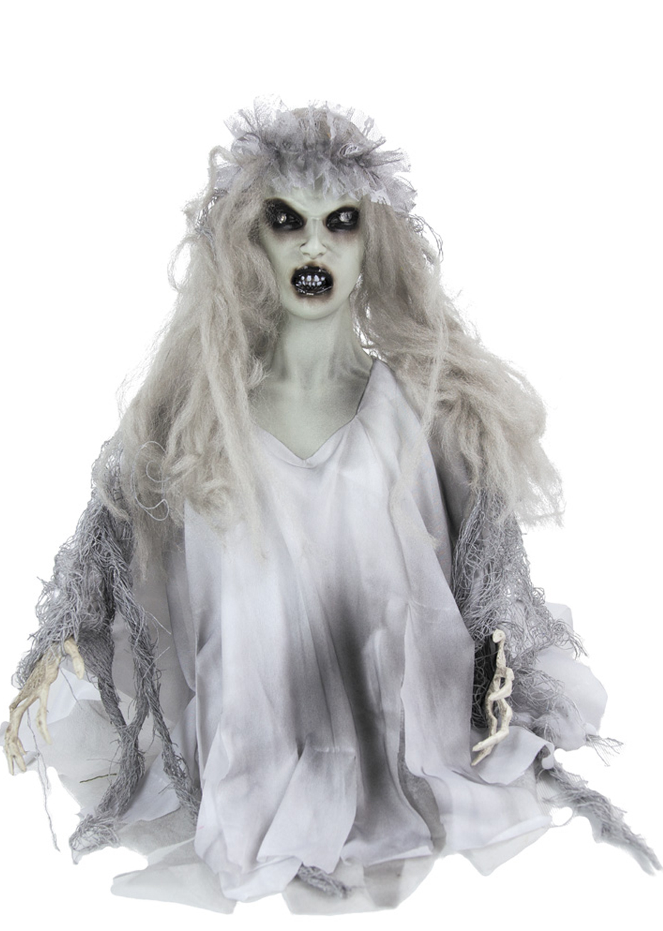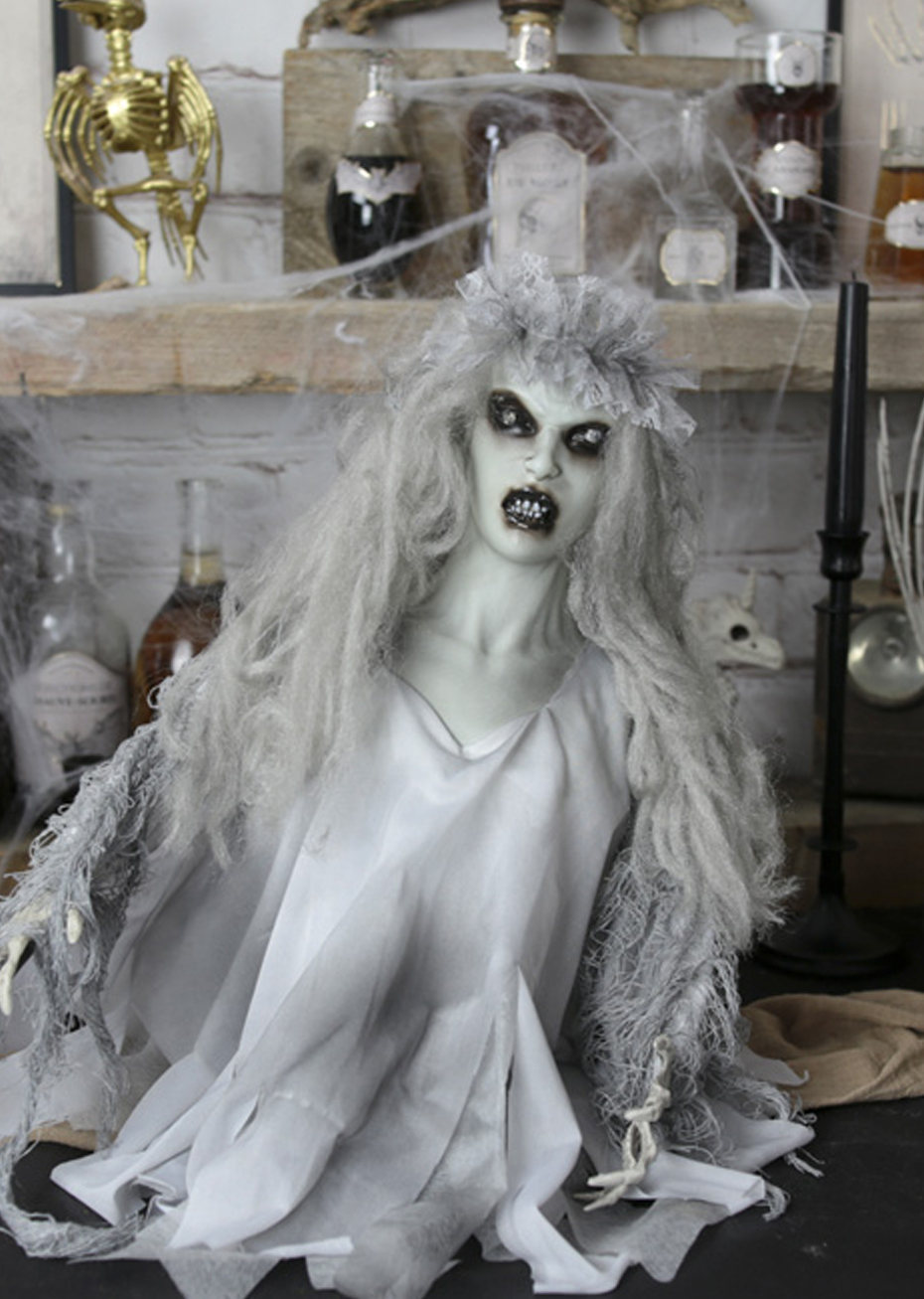 Décoration Dame Blanche Animée Halloween – Sonore et lumineuse, 40 cm 👻