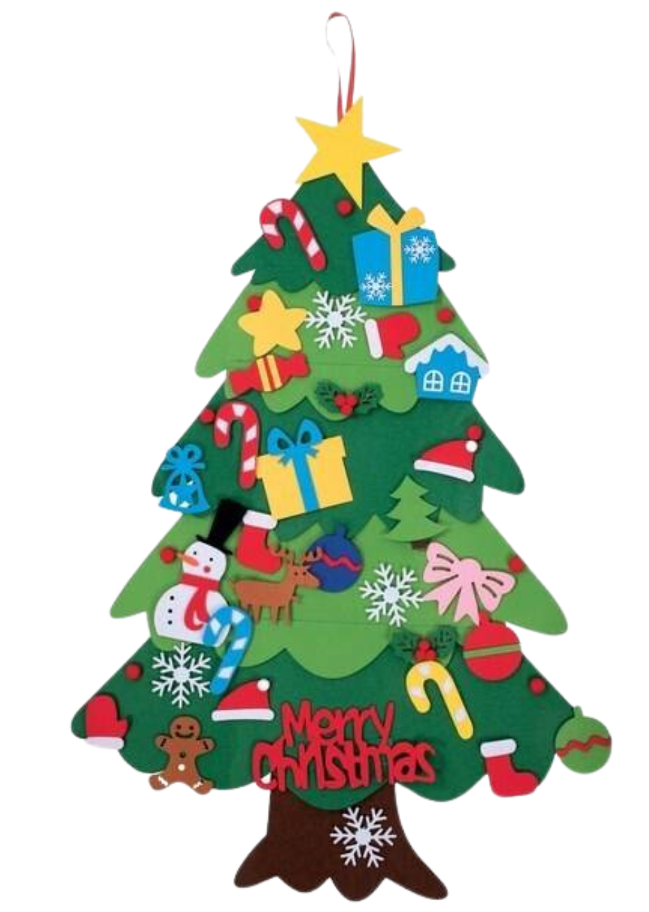 Ce sapin de Noël DIY en feutrine est une décoration ludique et créative, parfaite pour les enfants. Conçu pour être accroché au mur, il est équipé de nombreux emplacements à scratch permettant d’y fixer facilement les décorations fournies. Cadeaux, cannes à sucre, flocons, étoiles, personnages… une multitude d’éléments à placer et replacer à volonté pour composer un sapin unique et amusant. Une activité idéale pour patienter jusqu’à Noël tout en décorant la maison.