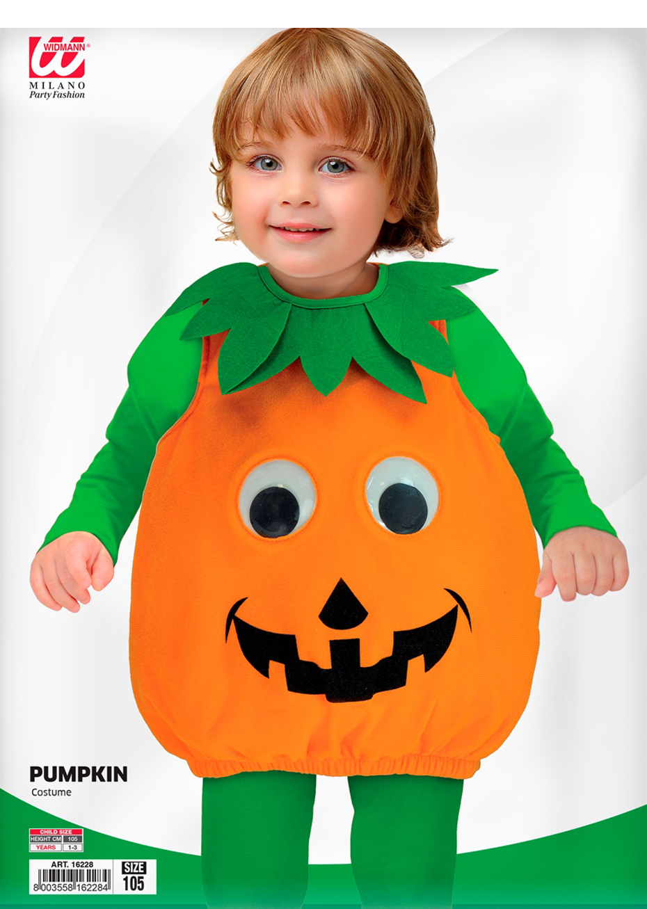 Ce déguisement de citrouille pour enfant est une tenue idéale pour Halloween. Il se compose d’une combinaison orange avec un visage de citrouille souriante, un col qui simule les feuilles et des yeux mobiles. Un costume aussi craquant que confortable pour les plus petits.