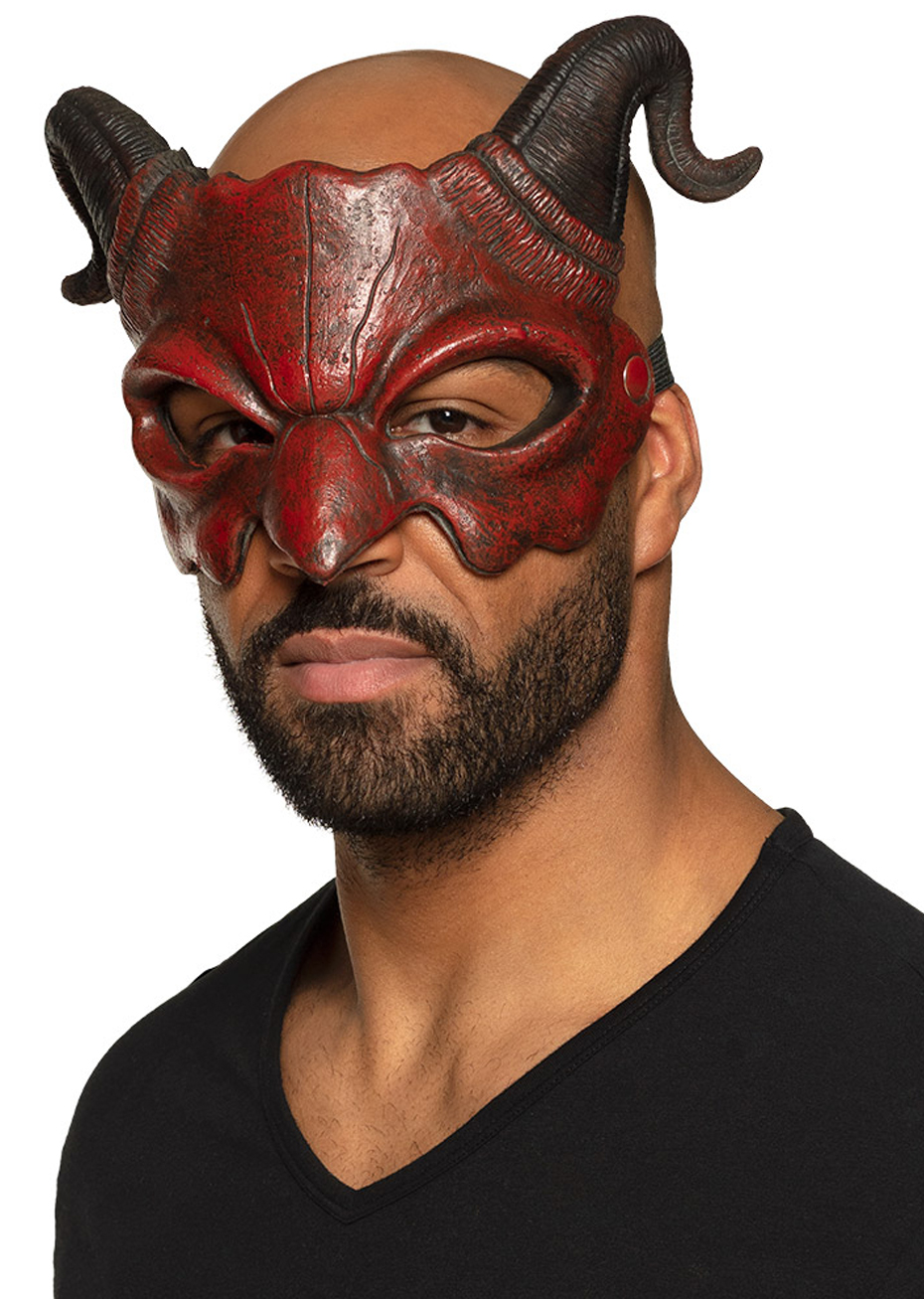 Ce masque de démon en mousse de latex séduit par son aspect sculpté et ses détails soignés. De couleur rouge foncé avec des nuances sombres, il présente deux petites cornes noires recourbées et un relief marqué au niveau du front et du nez. Léger et souple, il se maintient facilement grâce à un élastique à l’arrière de la tête. Cet accessoire complète parfaitement un déguisement infernal ou une tenue d’Halloween sur le thème des créatures diaboliques.