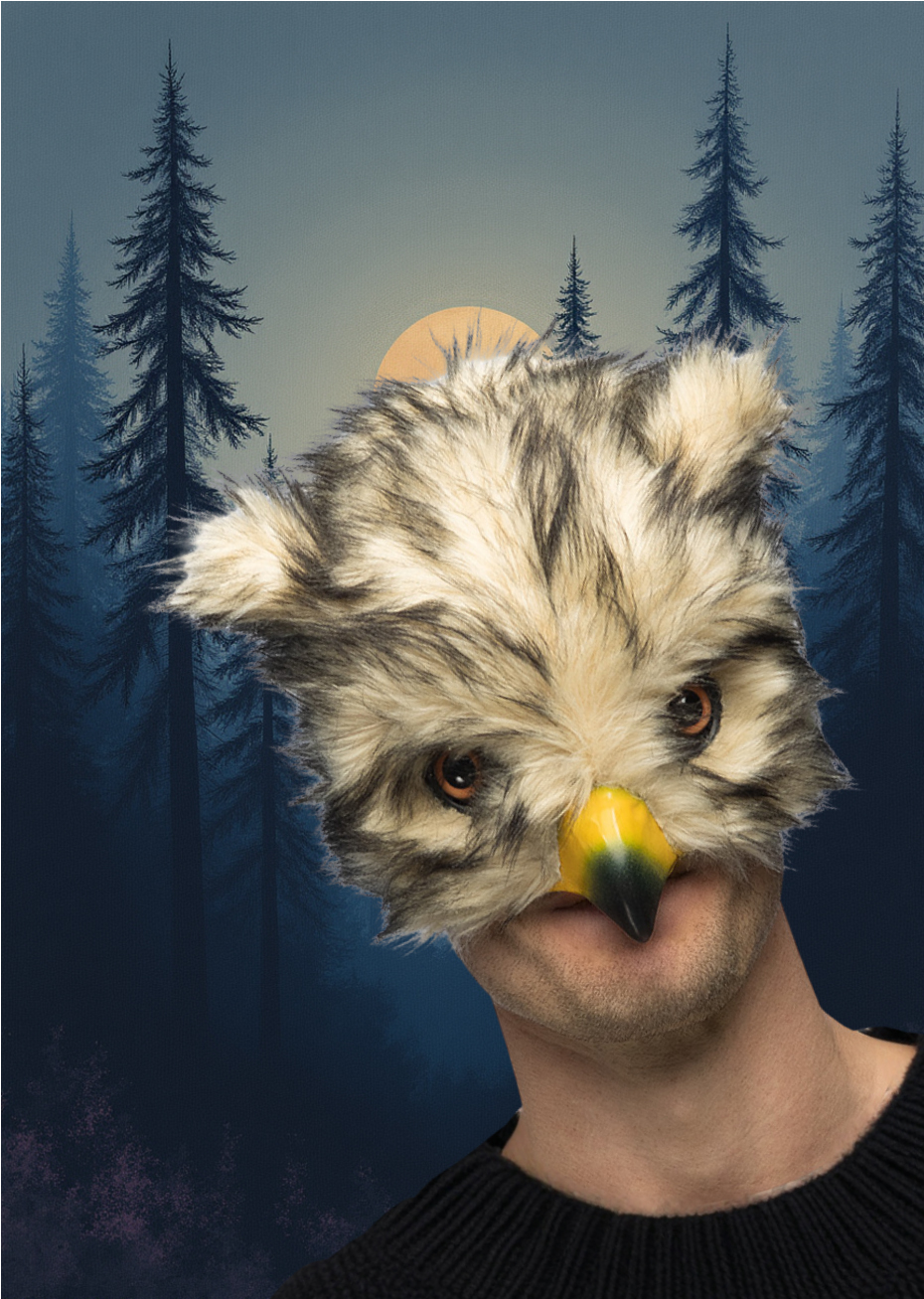 Masque de Hibou – Demi-Visage en Fausse Fourrure – Effet Animalier & Mystérieux 🦉 ✨
