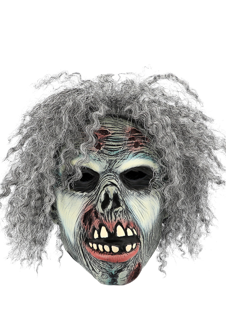 Masque de Zombie Crazy – Masque Complet avec Cheveux Gris 😱