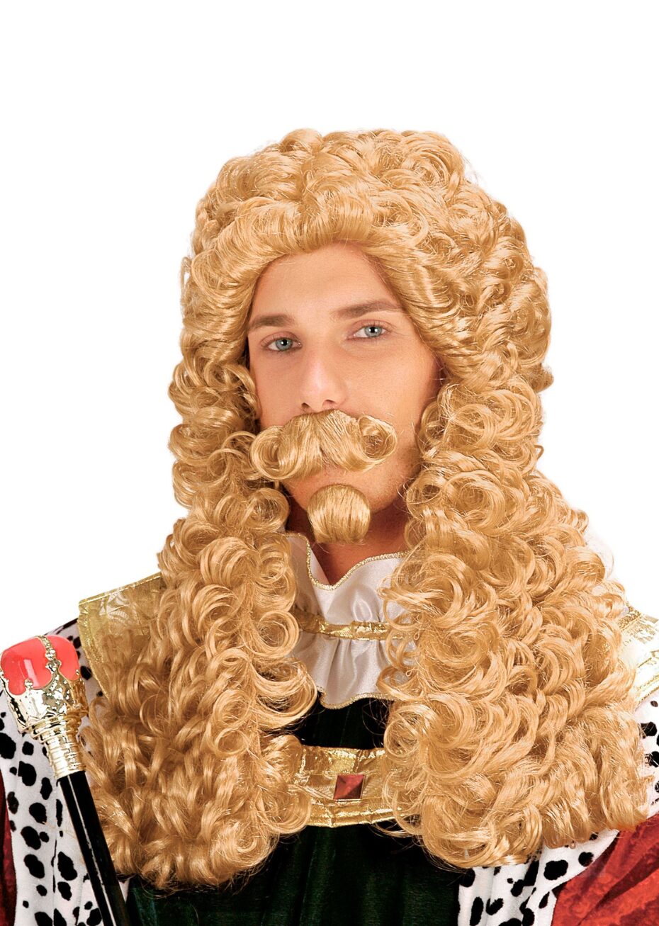 Perruque de Roi Blonde – Avec Moustache et Bouc – Style Louis XIV et Cour Royale 👑 ✨
