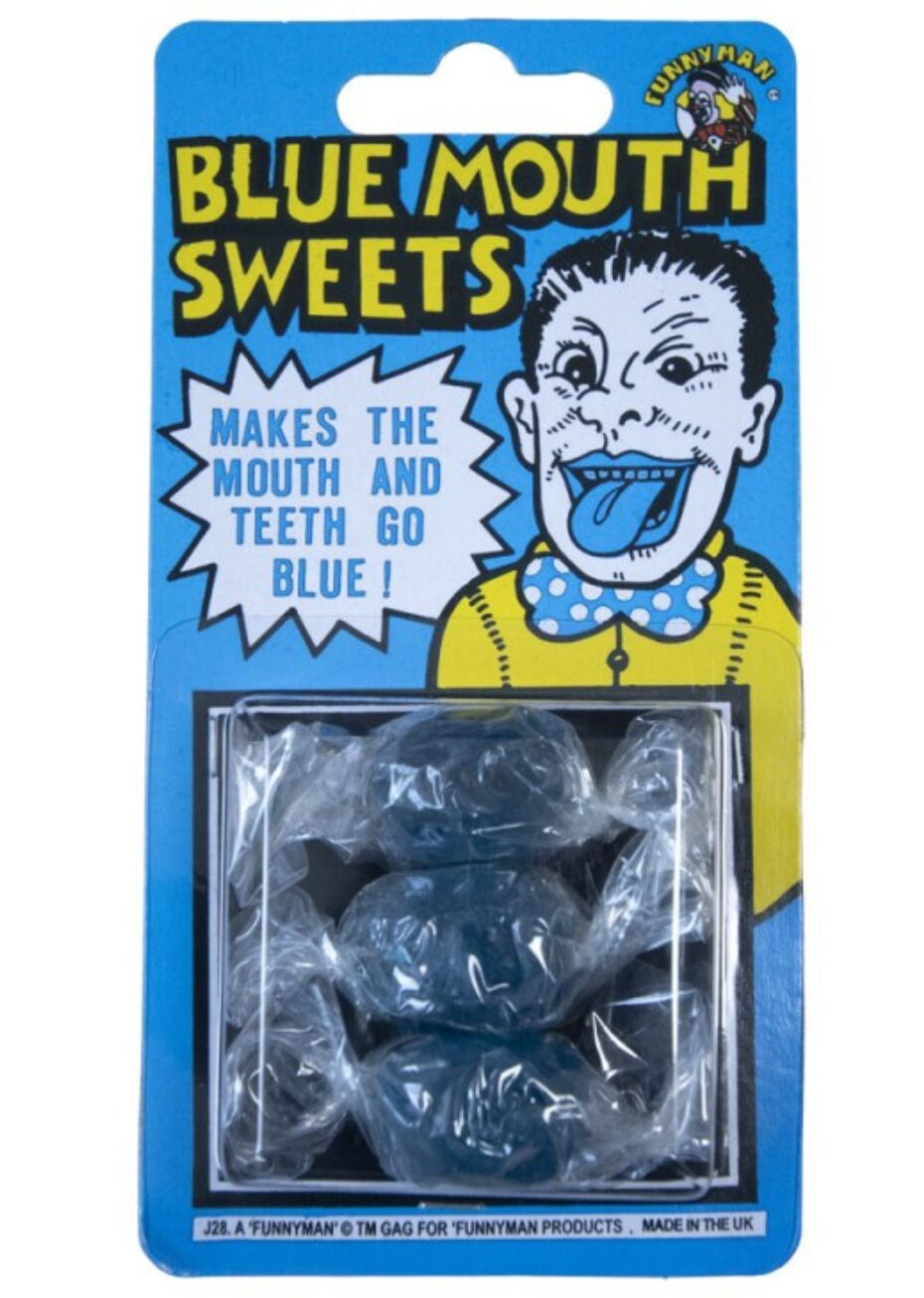 Bonbon langue bleue : un bonbon parfaitement comestible… et qui laisse une bouche et une langue toutes bleues ! 🍬💙😂